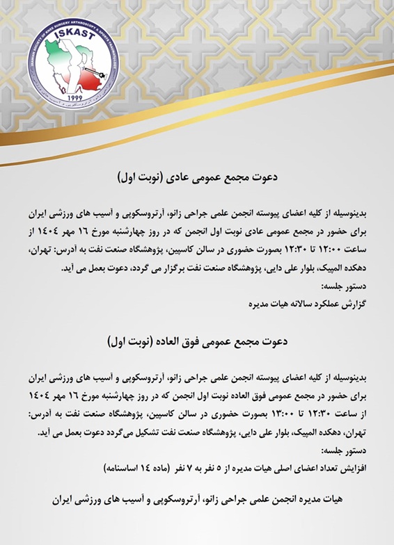 Conference Registration Announcement of Iranian Society of Knee Surgery, Arthroscopy and Sports Traumatology