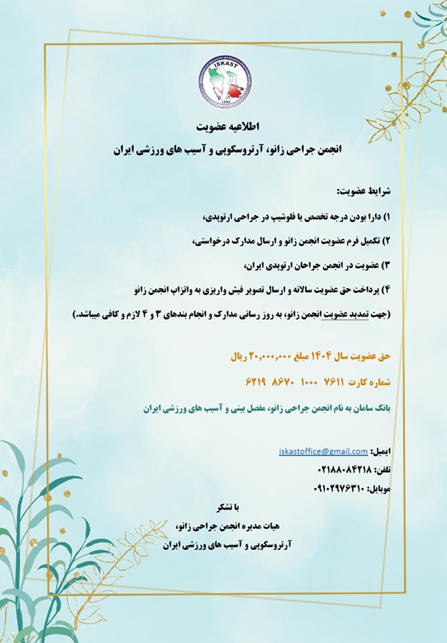 Conference Registration Announcement of Iranian Society of Knee Surgery, Arthroscopy and Sports Traumatology